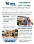 T hanks to your support, Habitat for Humanity in the Roanoke Valley (HFHRV) is helping to eliminate substandard housing by constructing and rehabilitating homes; advocating for fair housing policies; providing financial education and guidance to participating families; providing access to zero-interest or low-interest loans and affordable mortgages; and by empowering families. We have seen that our process not only provides a stable home environment, but also offers a mechanism for teaching families ways in which they can break the adverse cycle of poverty for the next generation. Some Habitat families even have first-time college students as a result of their participation in our homeownership program. Our process not only impacts the families we serve in profound ways, it is transforming the strength of our community as a whole. HFHRV is the only affordable housing provider in Roanoke that serves as Realtor, architect, builder, mortgage lender, mentor, counselor and educator for our partnering homeowner families.